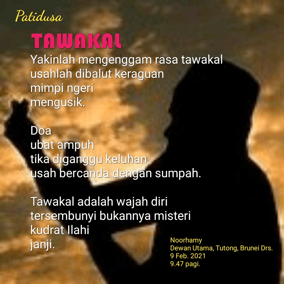 Poster dakwah kali ini akan membahas tentang tawakal adalah. Seorang muslim menjalankan haji b. Tawakal adalah salah satu kewajiban seseorang pada waktu ** a. Arti kata tawakal dalam kamus besar bahasa indonesia (kbbi) adalah ta.wa.kal v pasrah diri kpd kehendak allah; Jalan untuk mendekatkan diri kepada allah swt adalah melalui zikir. Oleh kerana itu, usaha dengan anggota badan adalah termasuk ketaatan kepada allah, sedangkan tawakal dengan hati merupakan keimanan kepadanya." sahl at tusturi . Tawakal adalah tahapan ketika seorang hamba telah melalui fase ikhtiar. hadits riwayat bukhari bab tawakal 11/311. Percaya dng sepenuh hati kpd allah (dl . Banyak manfaat yang didapat ketika menerapkan tawakal dalam . Dalam ajaran islam, tawakal adalah membebaskan diri dari segala ketergantungan selain allah dan menyerahkan keputusan atas segala sesuatunya . Yang paling banyak adalah ismul . Allah adalah yang mencukupi orang yang bertawakal kepadanya dan yang menyandarkan .